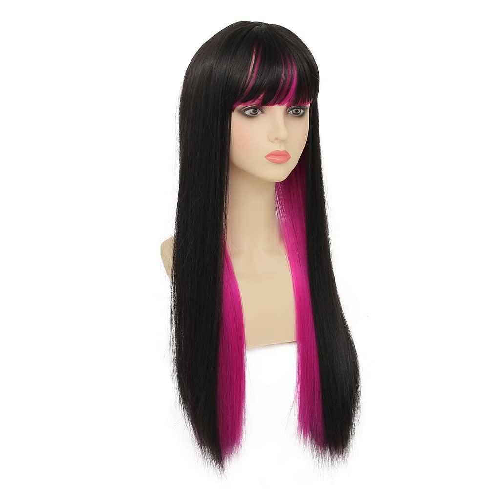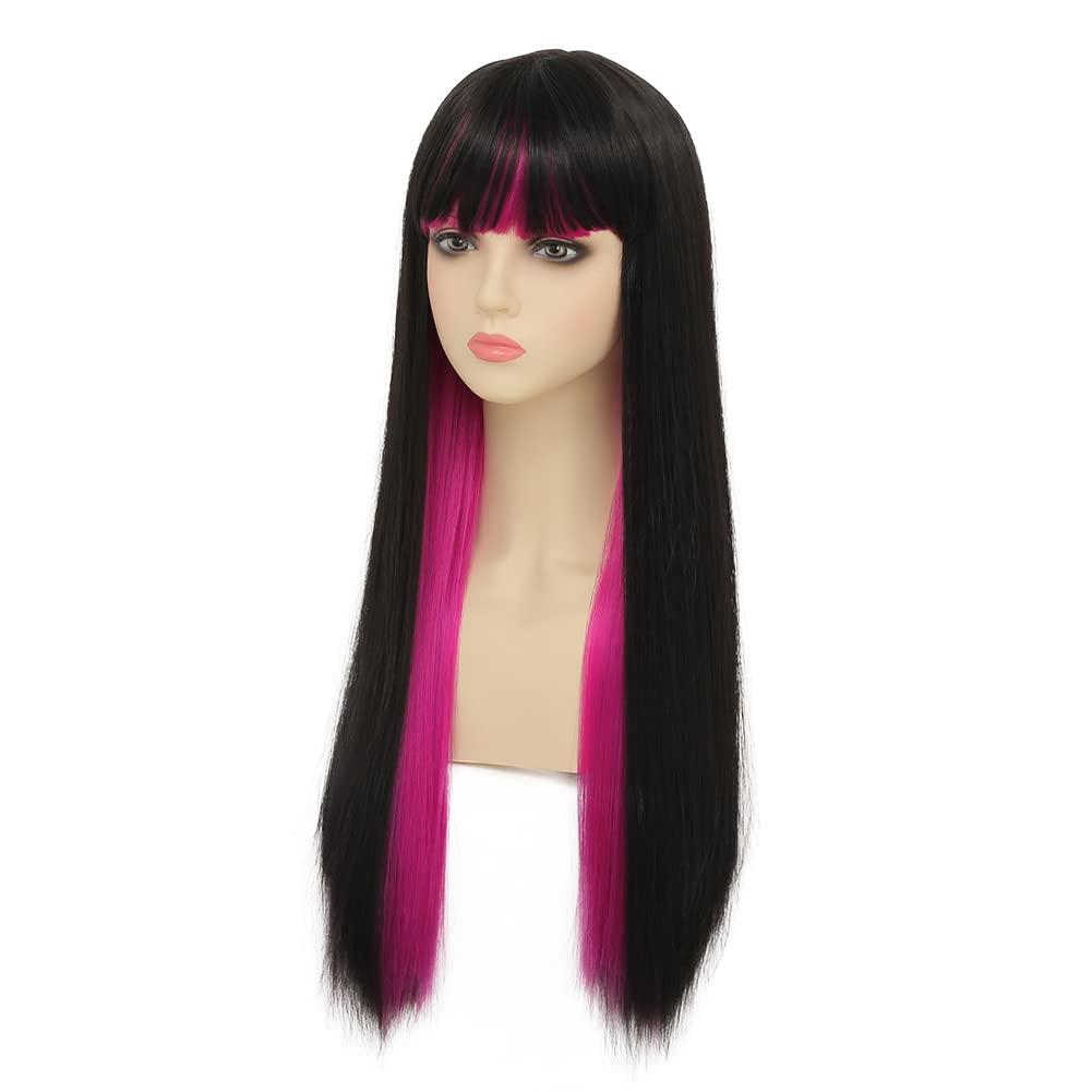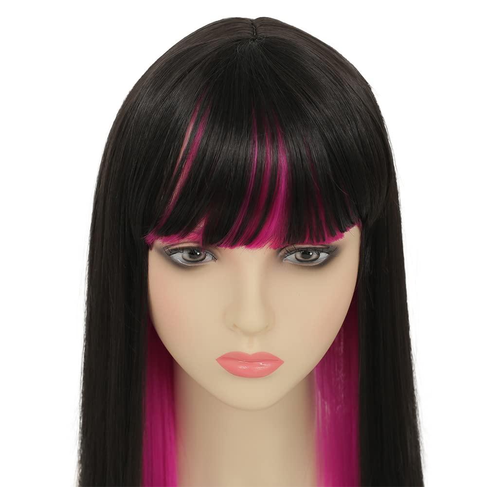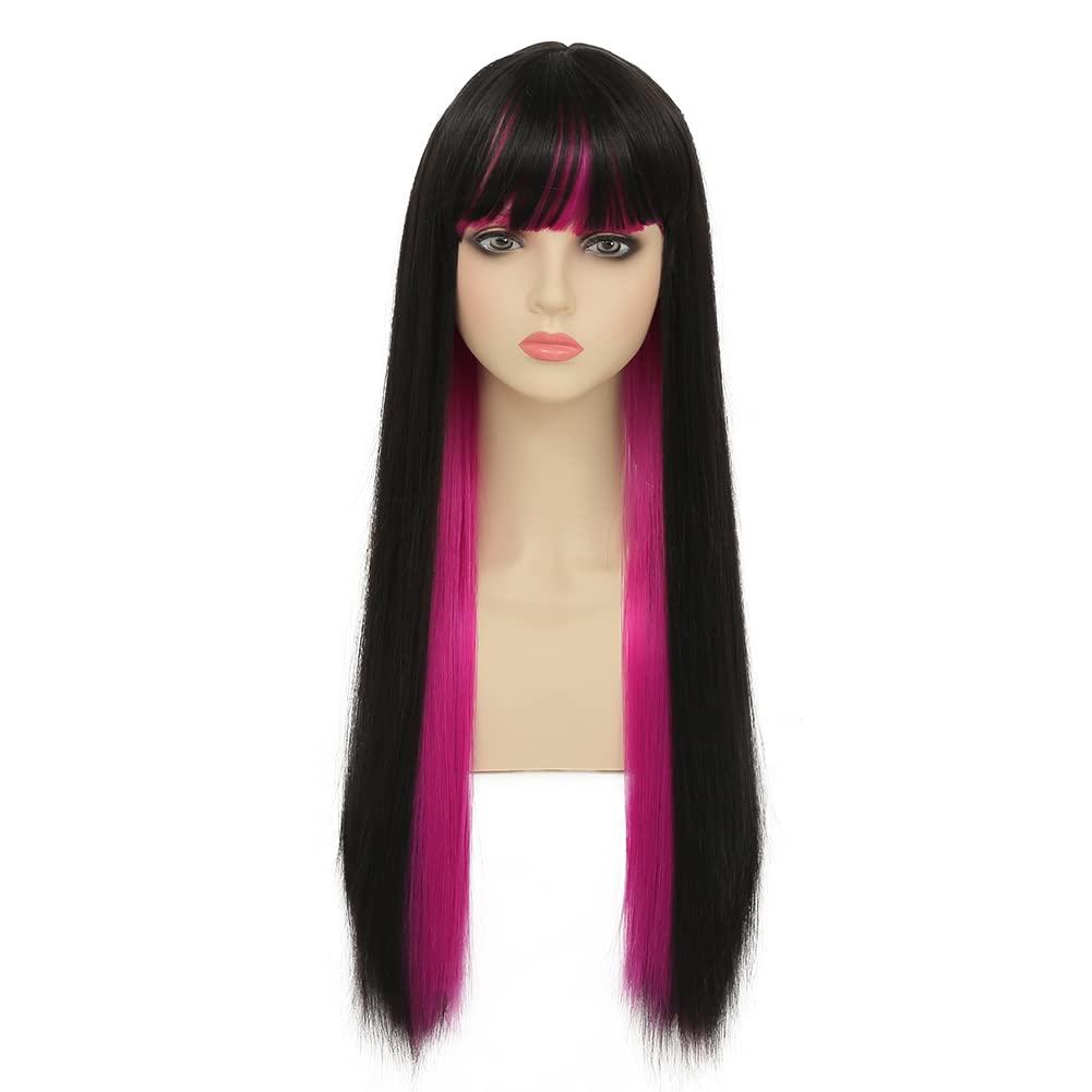 Black Mix Purple Long Straight Wigs with Bangs for Women Halloween Cosplay Party Costume Synthetic Hair Wigs(Black and Purple)(Black Purple)