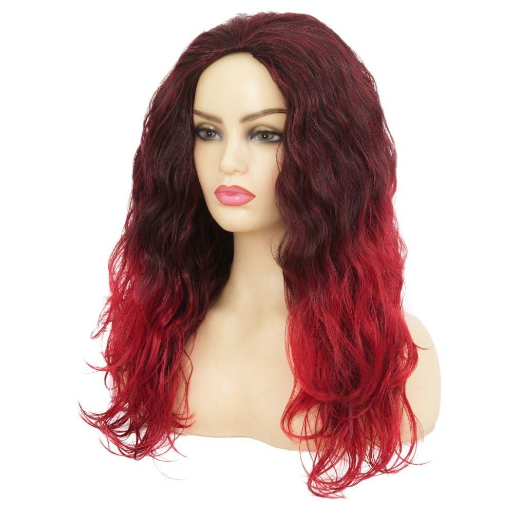 Blonde Curly Short Finger Wave Wigs for Lady with Bangs Synthetic Hair Natural Cosplay Halloween Costume Women Wigs(Black Red)
