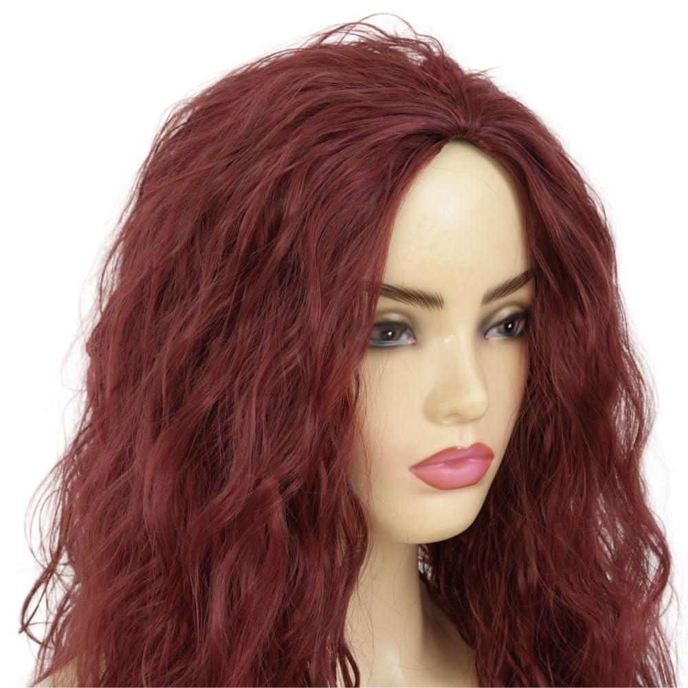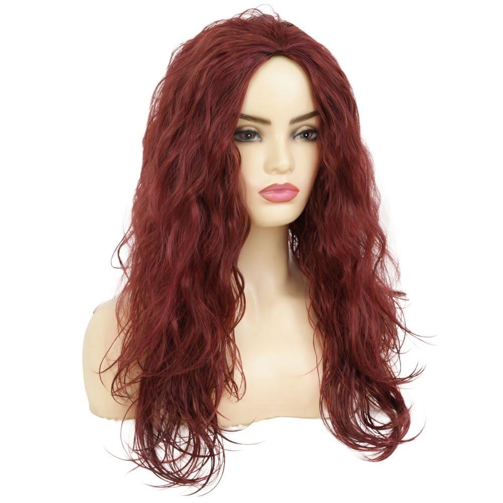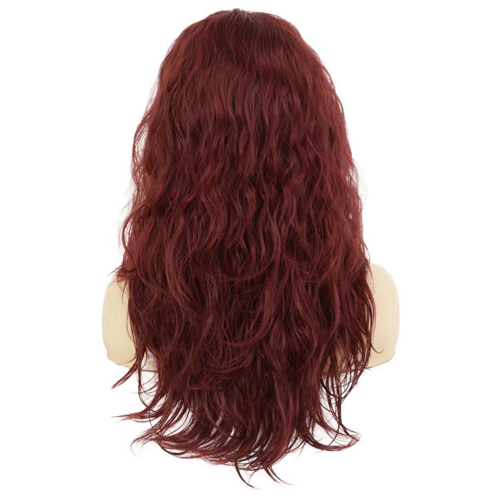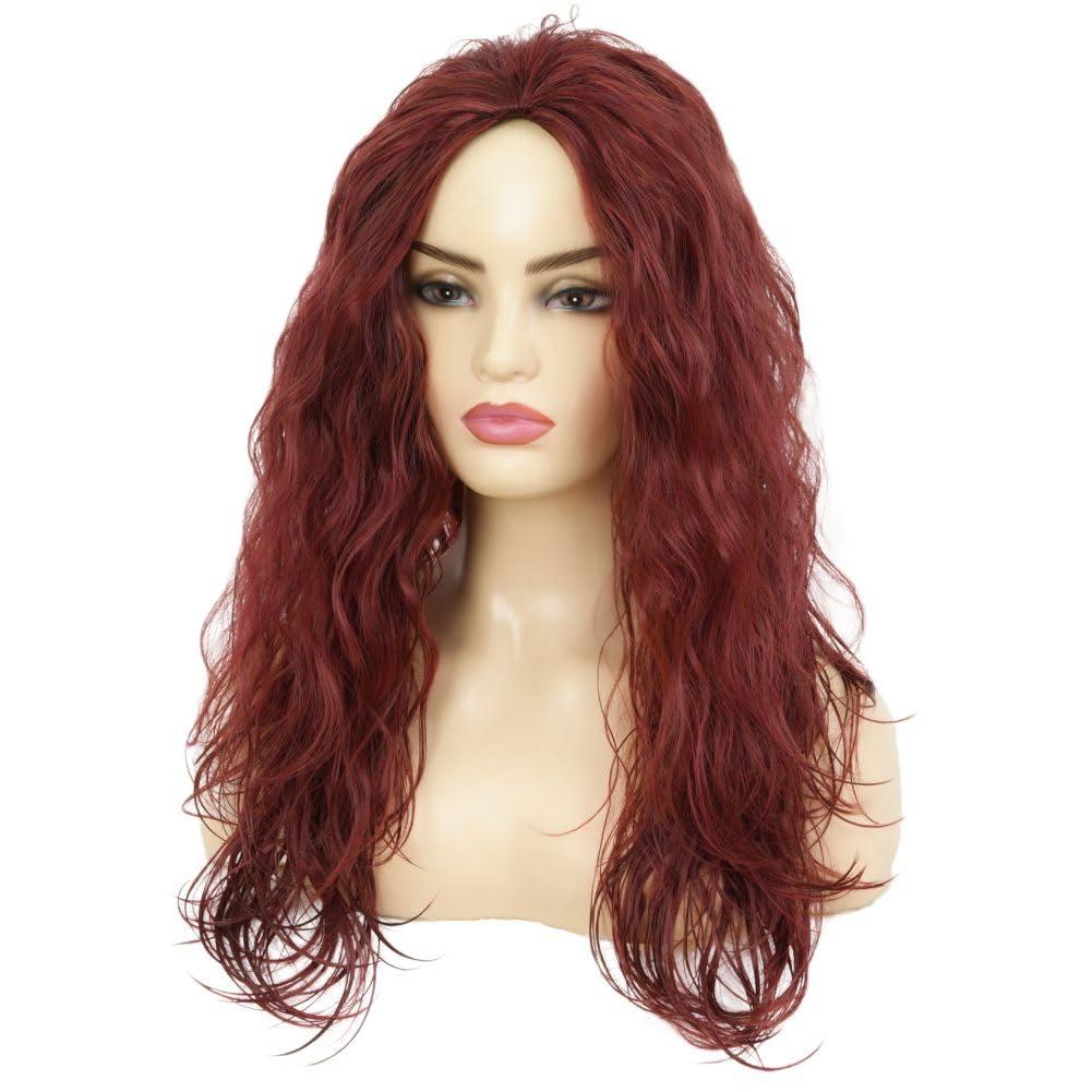 Blonde Curly Short Finger Wave Wigs for Lady with Bangs Synthetic Hair Natural Cosplay Halloween Costume Women Wigs(Wine Red)