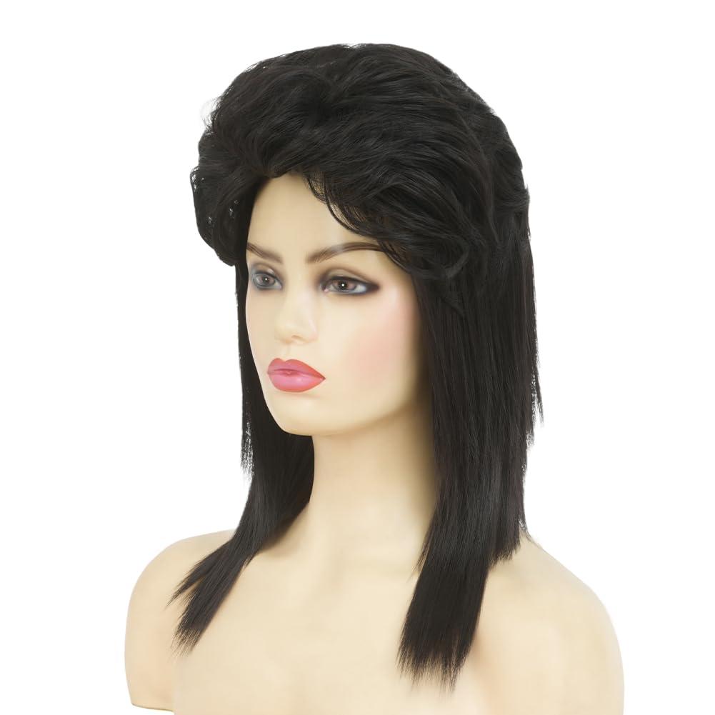 Blonde Mullet Wigs for Women 70s 80s Rocker Wig Shoulder Length Layered Cosplay Daily Hair Wigs(Blonde)(Black)