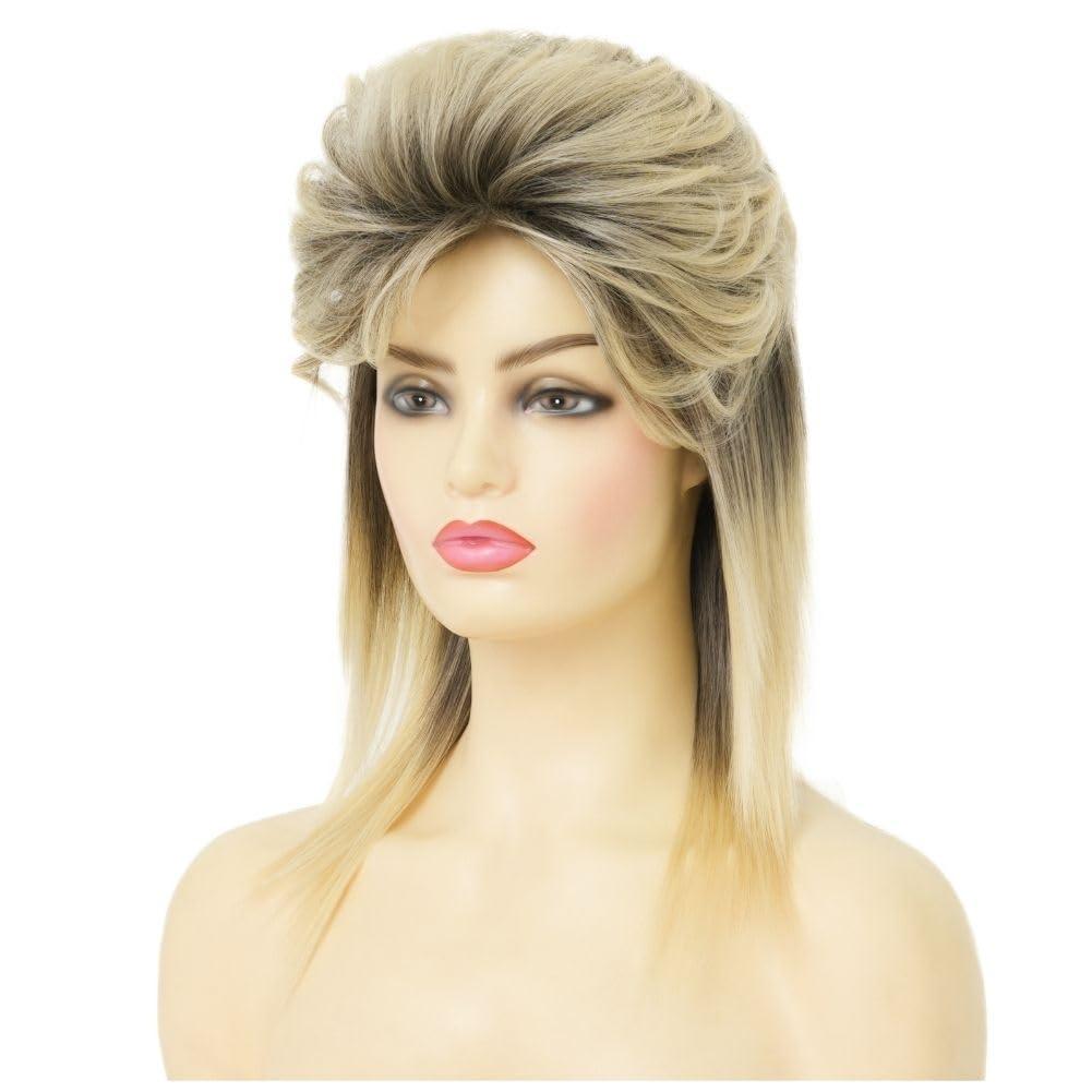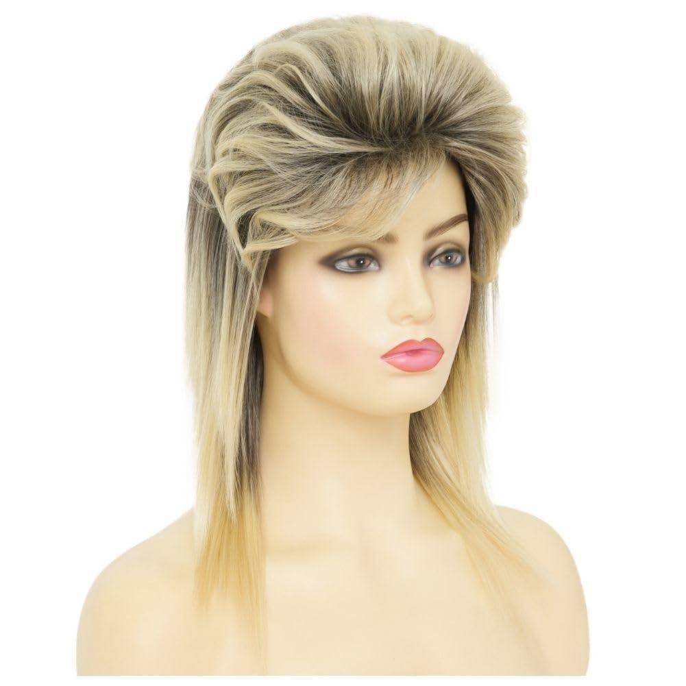 Blonde Mullet Wigs for Women 70s 80s Rocker Wig Shoulder Length Layered Cosplay Daily Hair Wigs(Blonde)(Blonde Black)