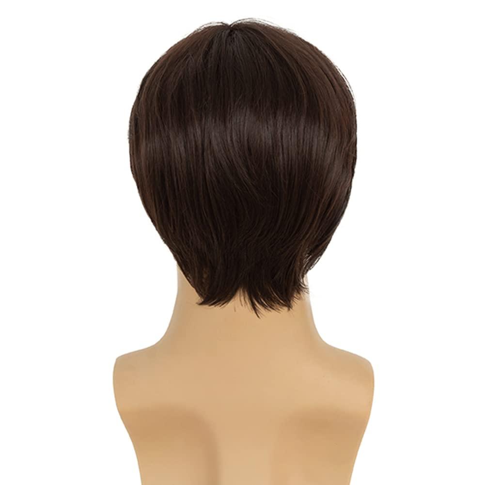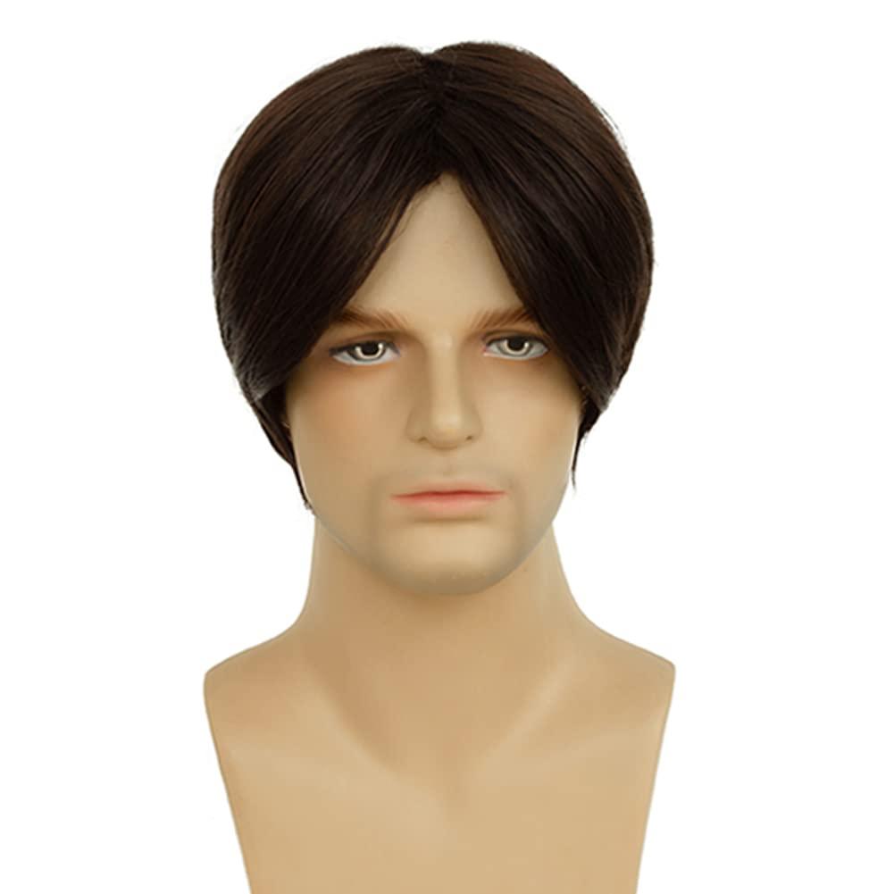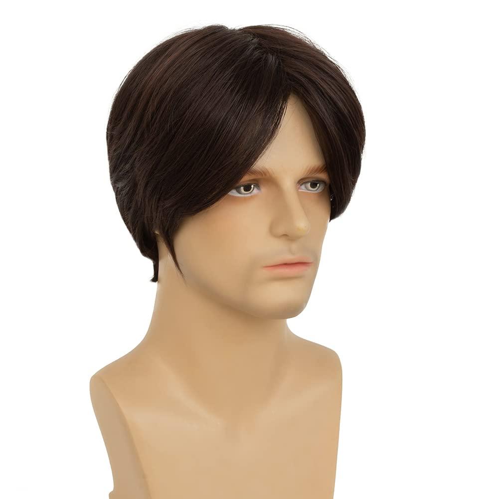 Brown Men Wigs Short Layered Straight Middle Part Fluffy Hair for Male Guy Synthetic Daily Cosplay Wigs with Cap(Brown)(Brown)