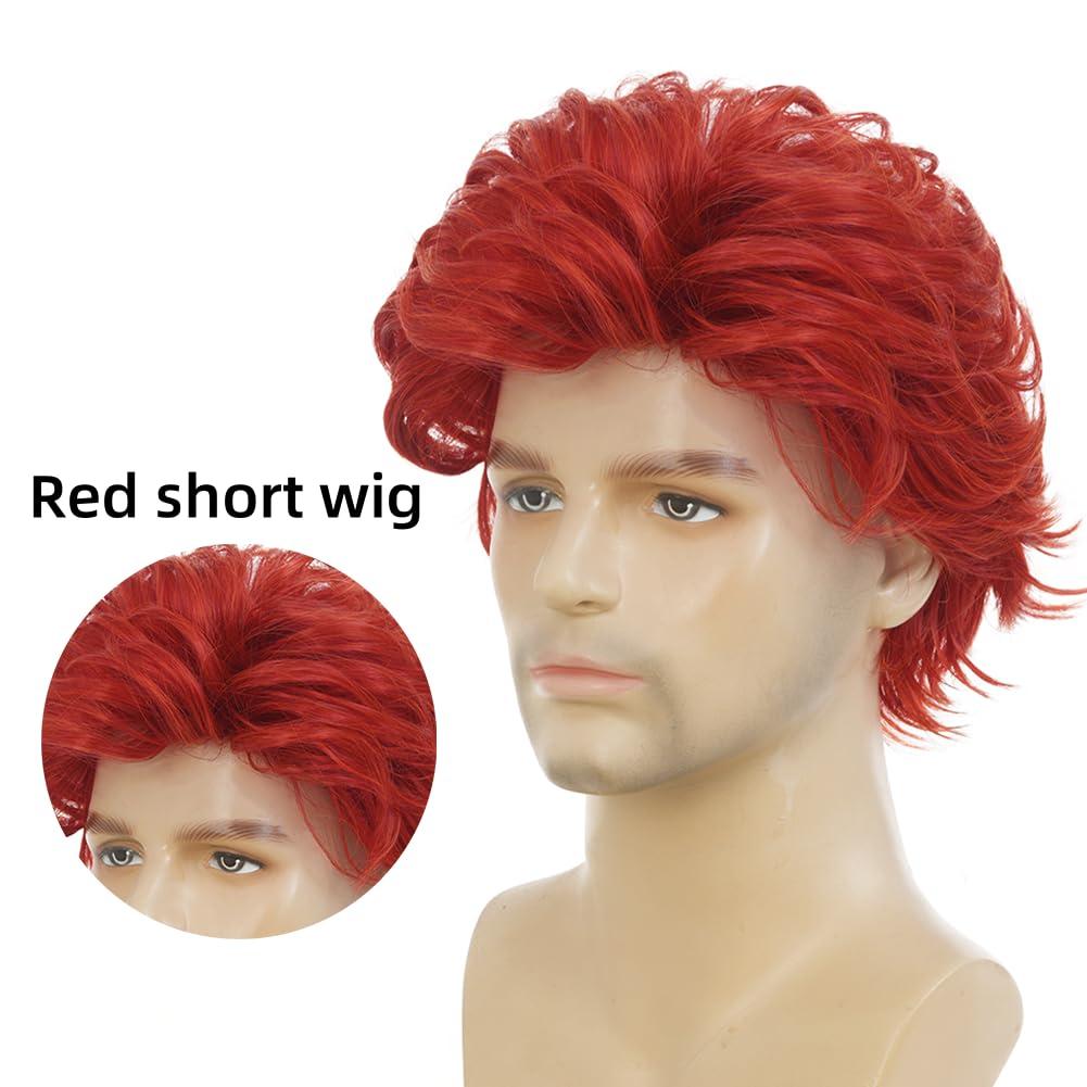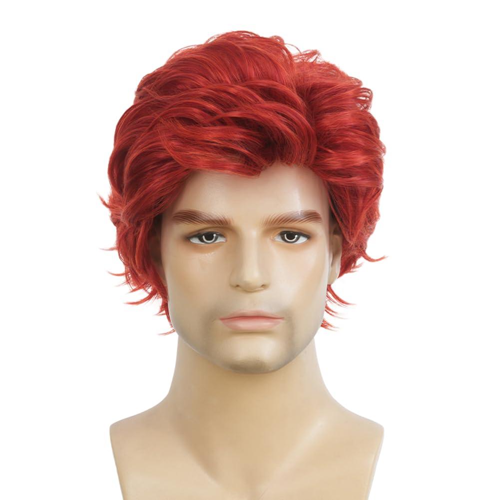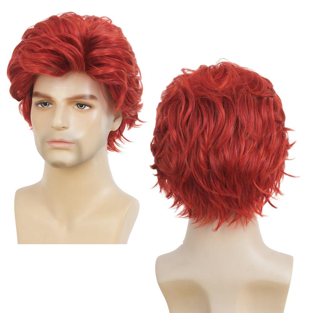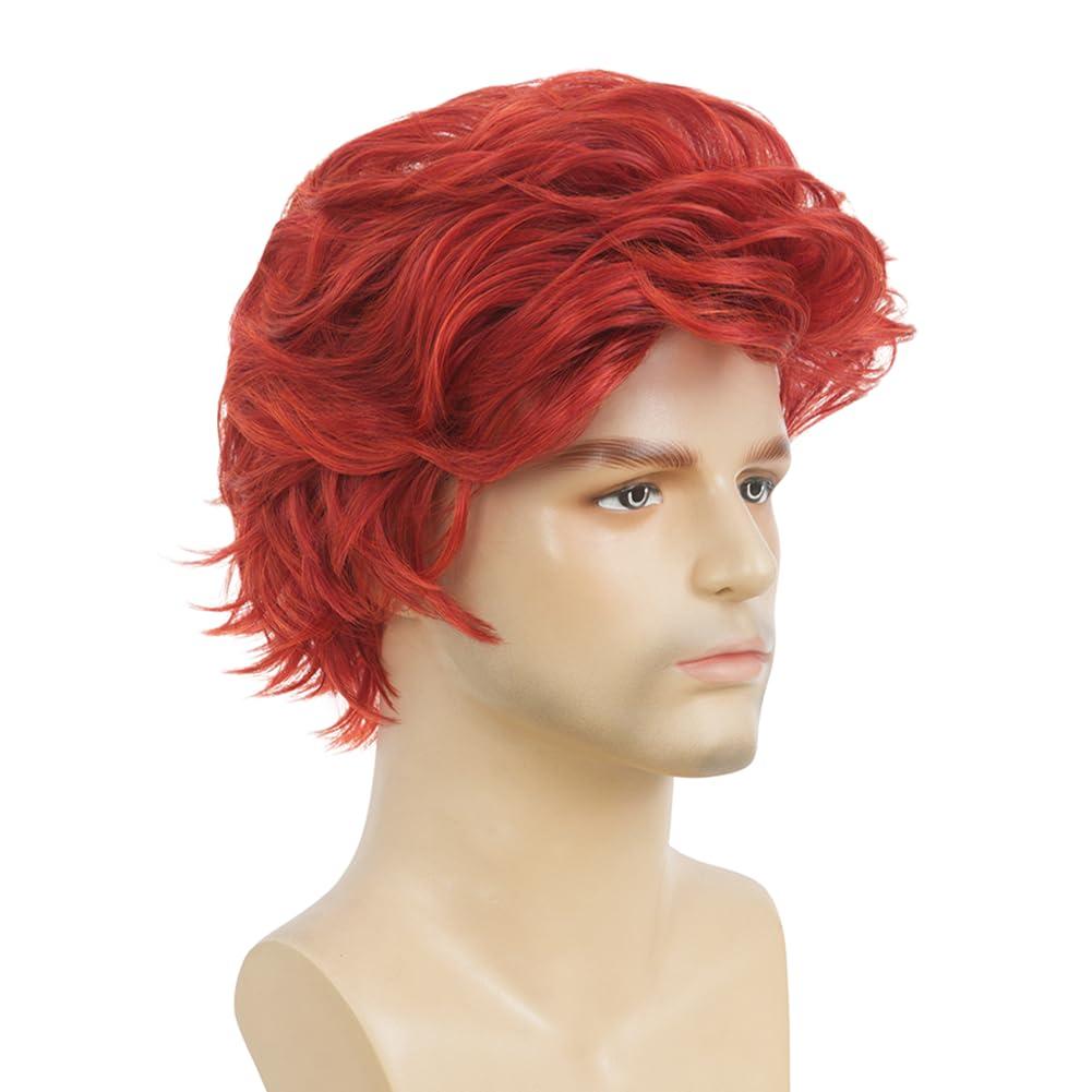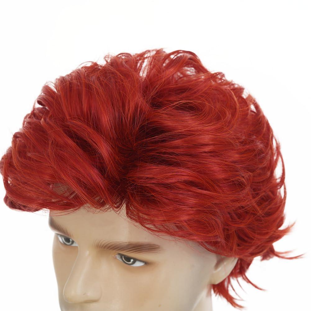 Brown Men Wigs Short Layered Straight Middle Part Fluffy Hair for Male Guy Synthetic Daily Cosplay Wigs with Cap(Brown)(Red)