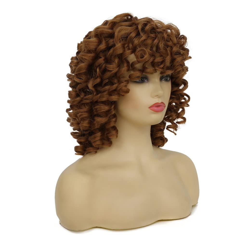 Grey Afro Curly Wigs for Black Women Dark Roots with Bangs Wig Short Wave Kinky Synthetic Daily Use Wig(Blonde)