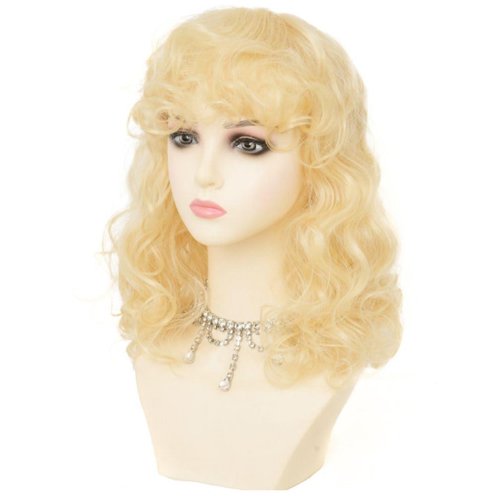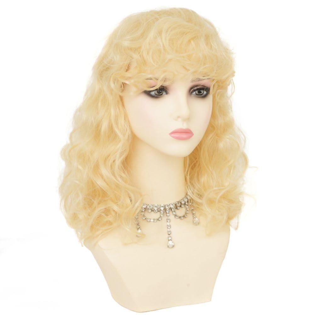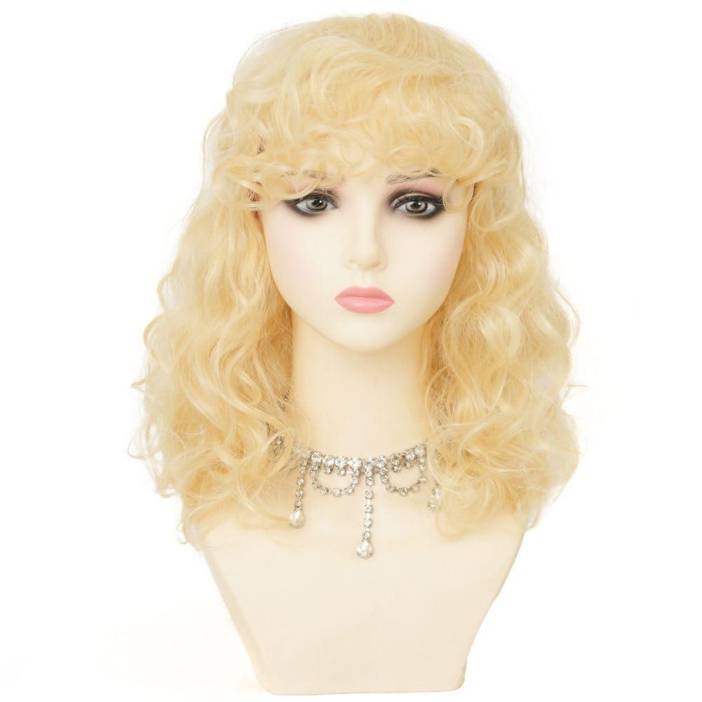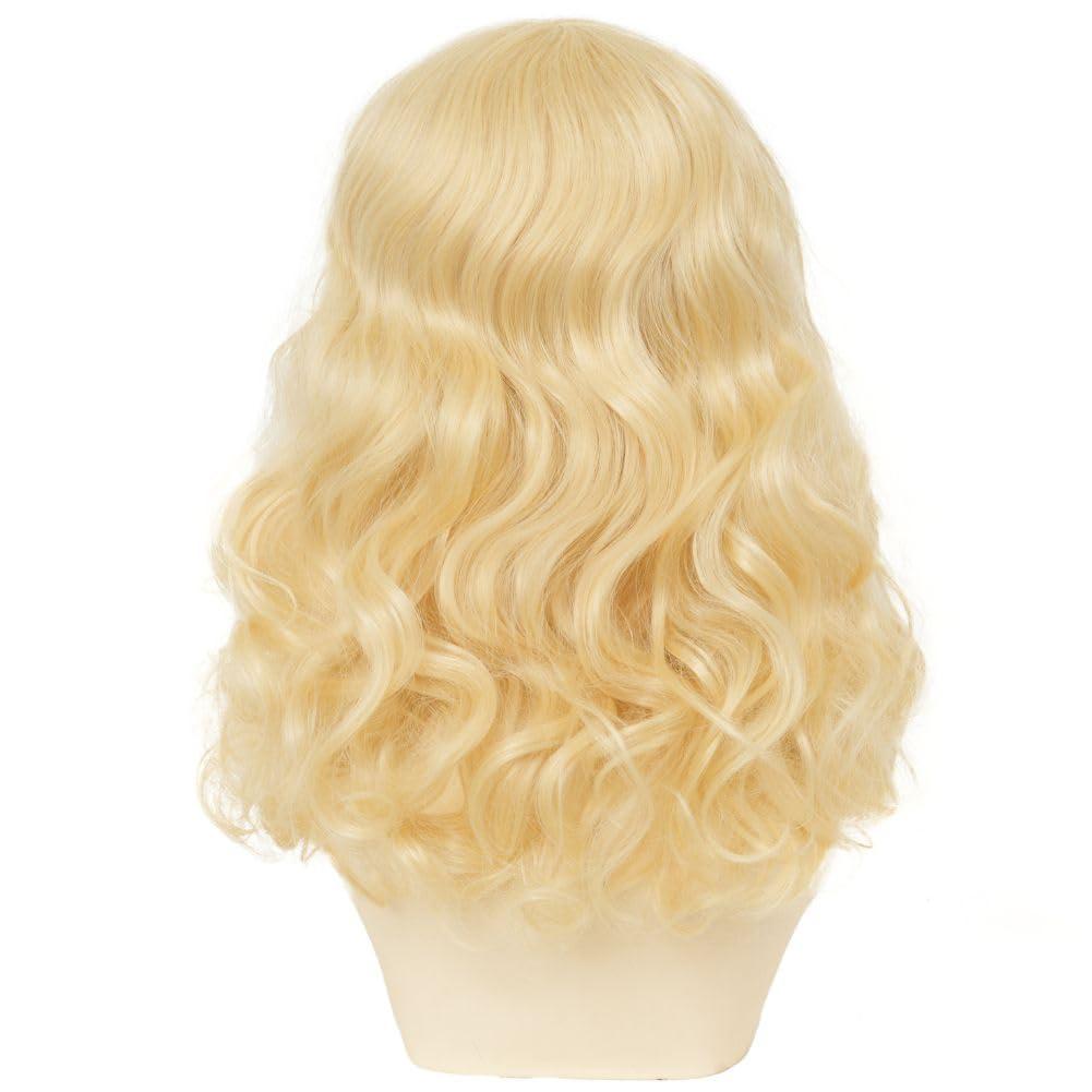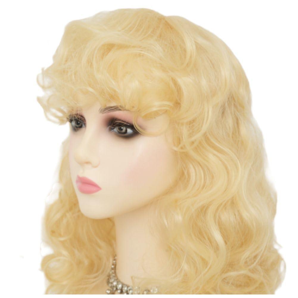 Long Red Curly Wavy Wigs with Bangs Natural Looking Wig Heat Resistantant Cosplay Halloween Hair Wigs(Blonde)