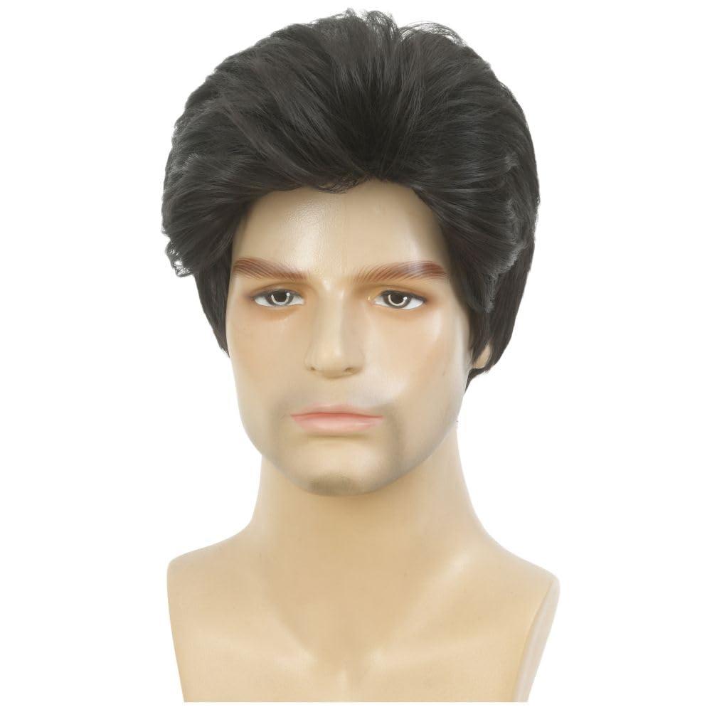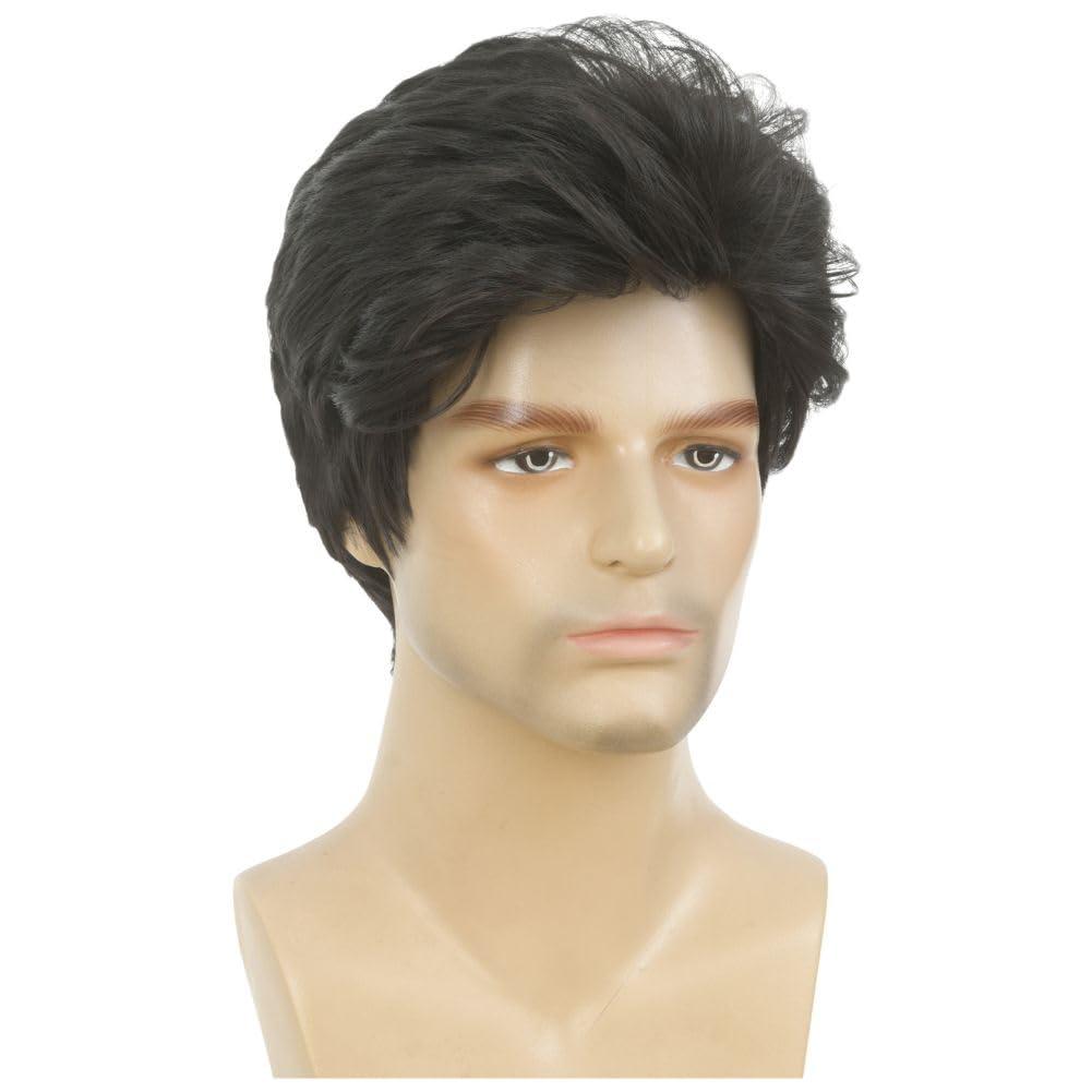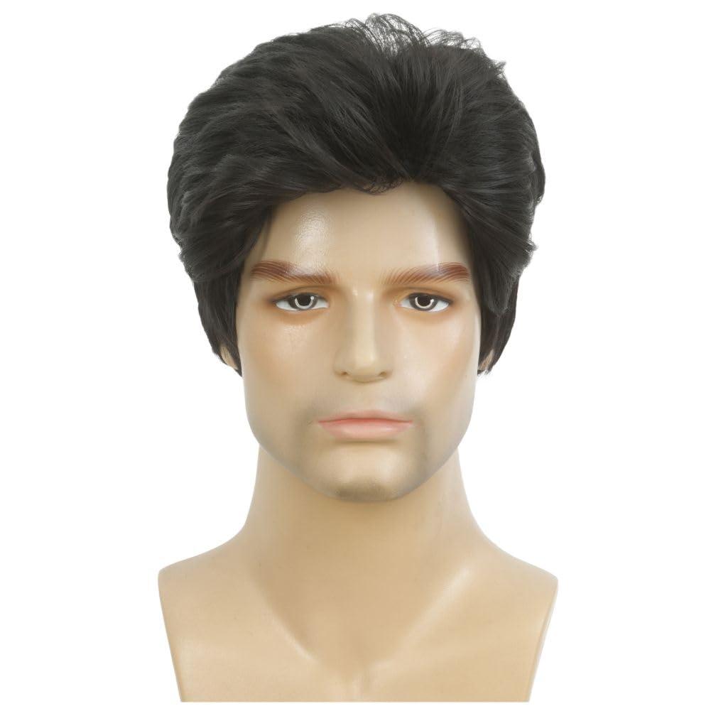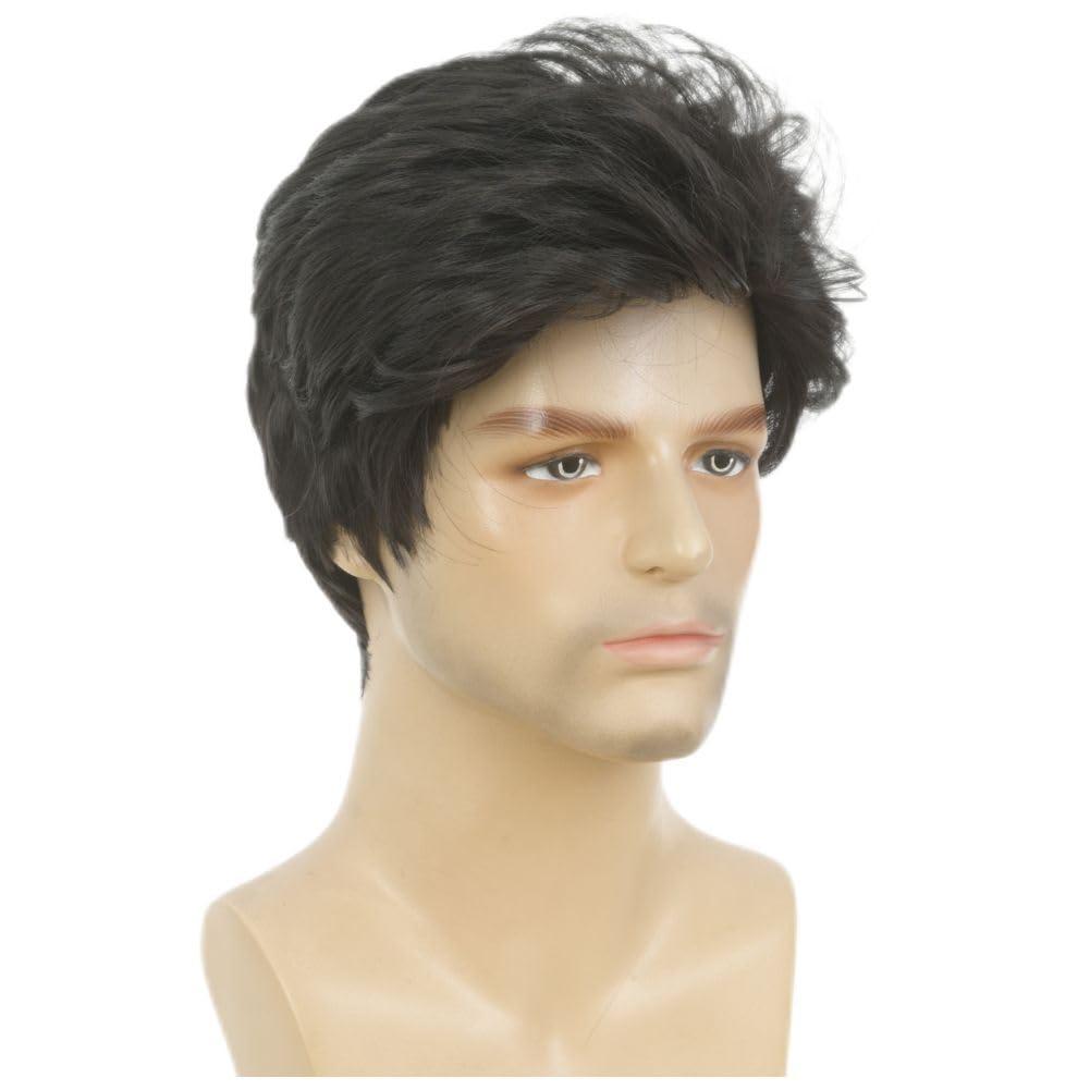 Mens Blonde Wigs Short Curly Layered Cosplay Costume Party Wigs for Male Guy(Blonde)(Black)