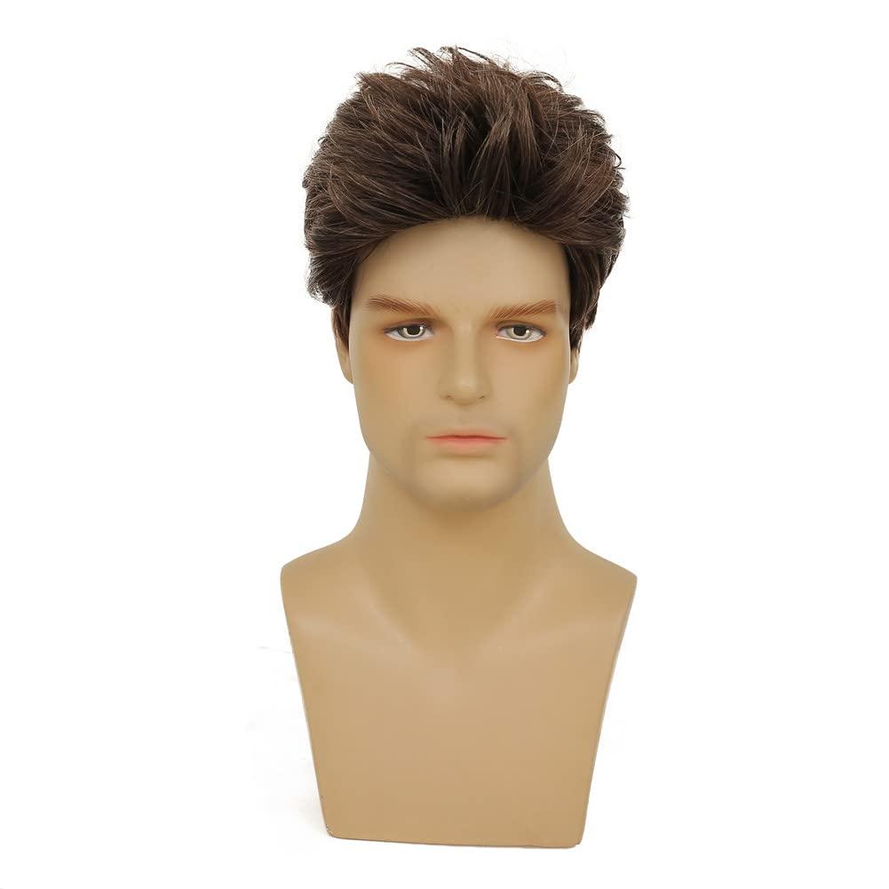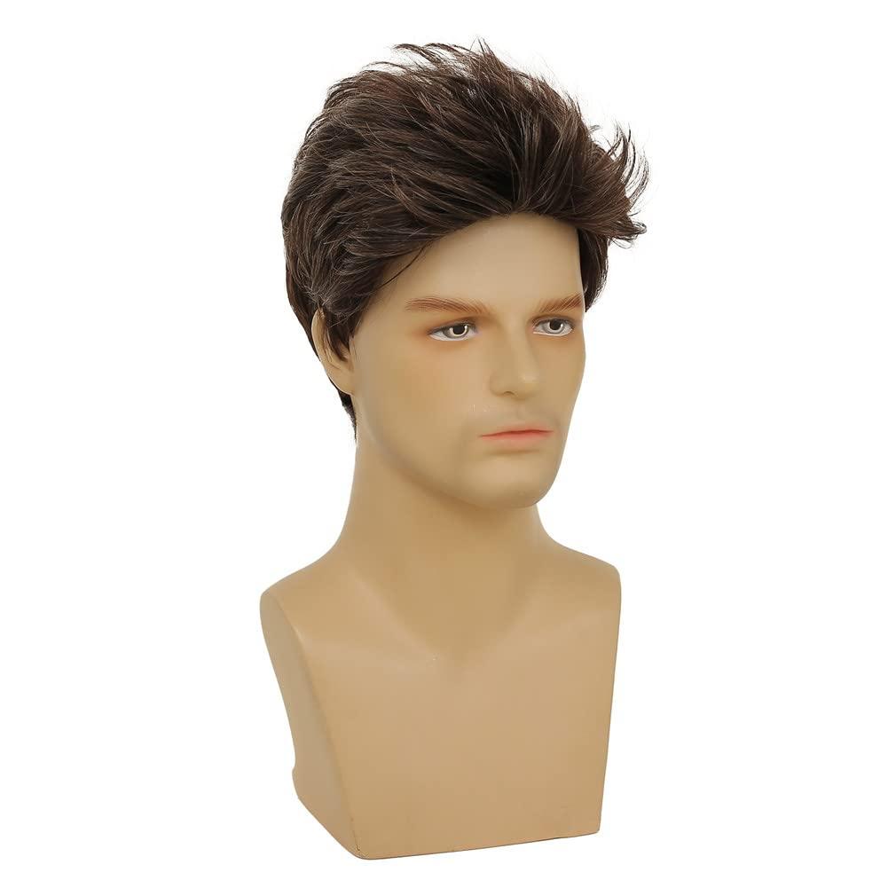 Mens Blonde Wigs Short Curly Layered Cosplay Costume Party Wigs for Male Guy(Blonde)(Brown)