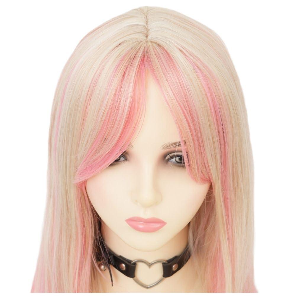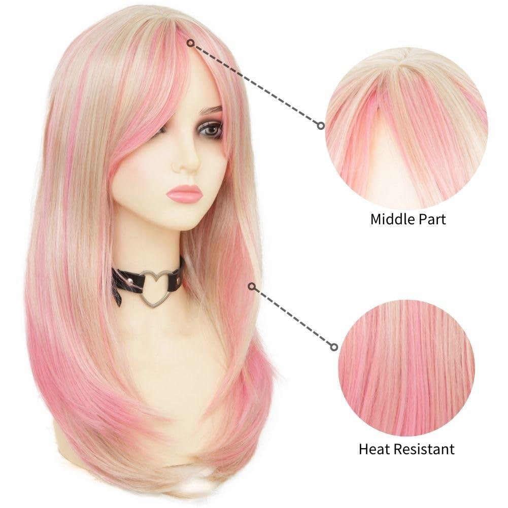 Orange Wig with Bangs for Women Long Curly Wavy Heat Resistantant Silky Ginger Wigs Cosplay Halloween Daily Use (Orange)(Blonde Pink)
