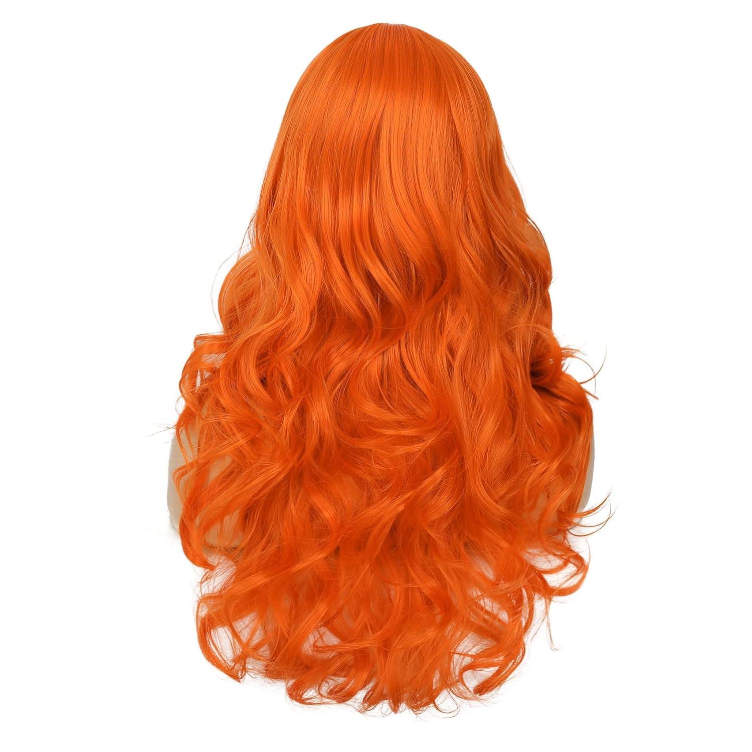 About this wig: The long wavy orange wig is made of high quality heat resistant synthetic fiber, which is soft, smooth, durable and natural looking.