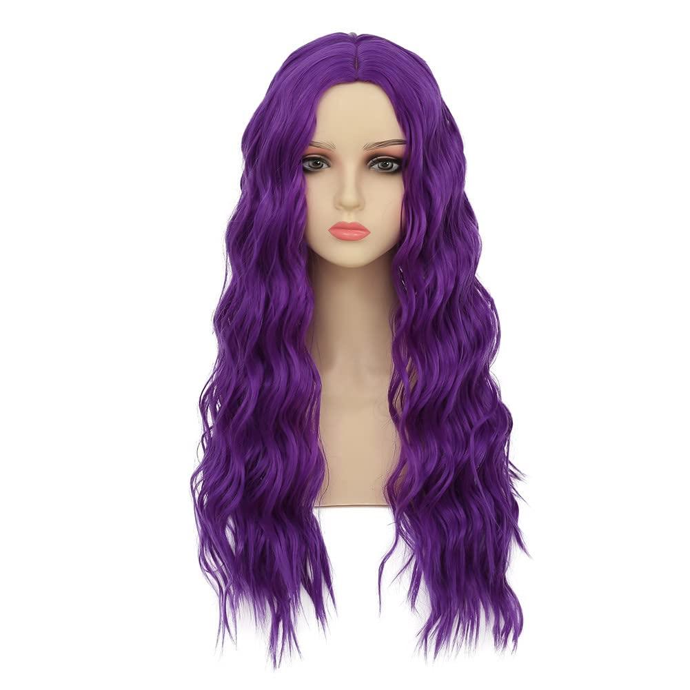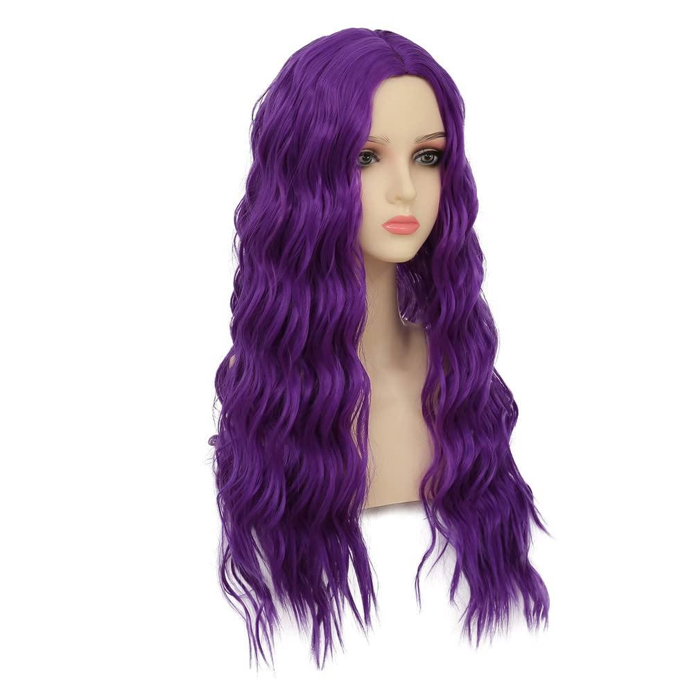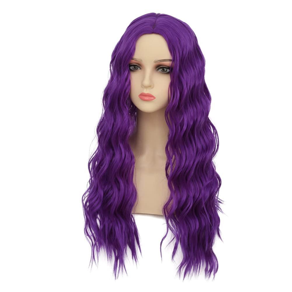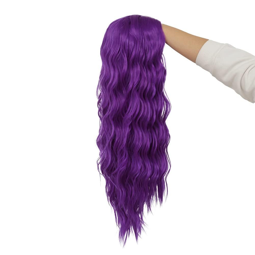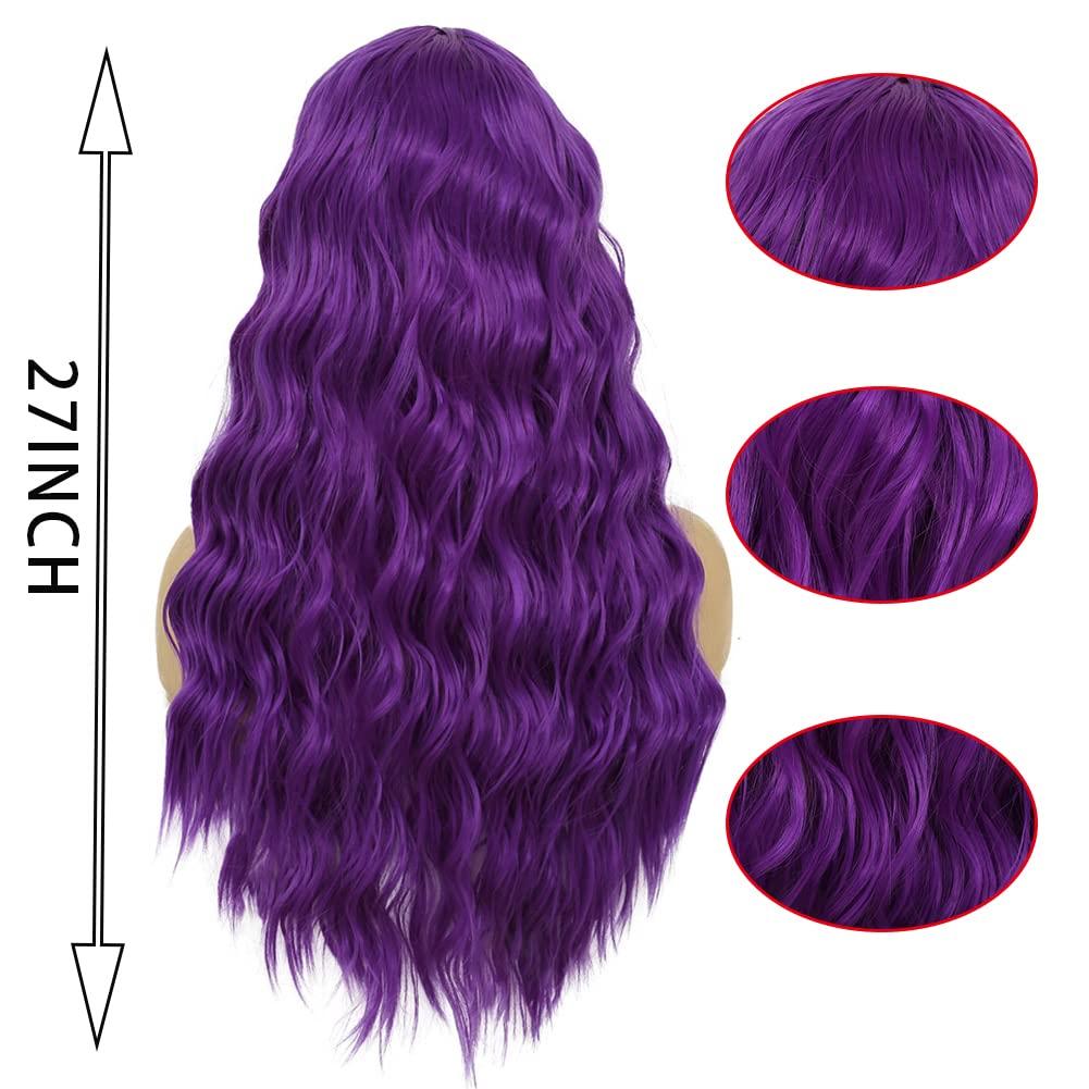 Orange Wig with Bangs for Women Long Curly Wavy Heat Resistantant Silky Ginger Wigs Cosplay Halloween Daily Use (Orange)(Purple)