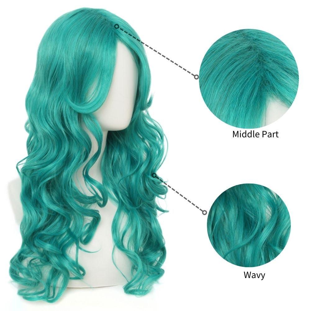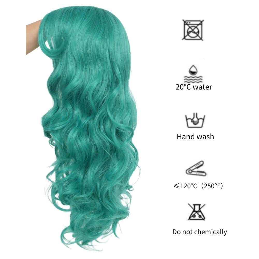 Red Wigs for Women Long Wavy Heat Resistant Side Part Natural Looking Cosplay Wigs Halloween Party (Bright Red)(Green3)