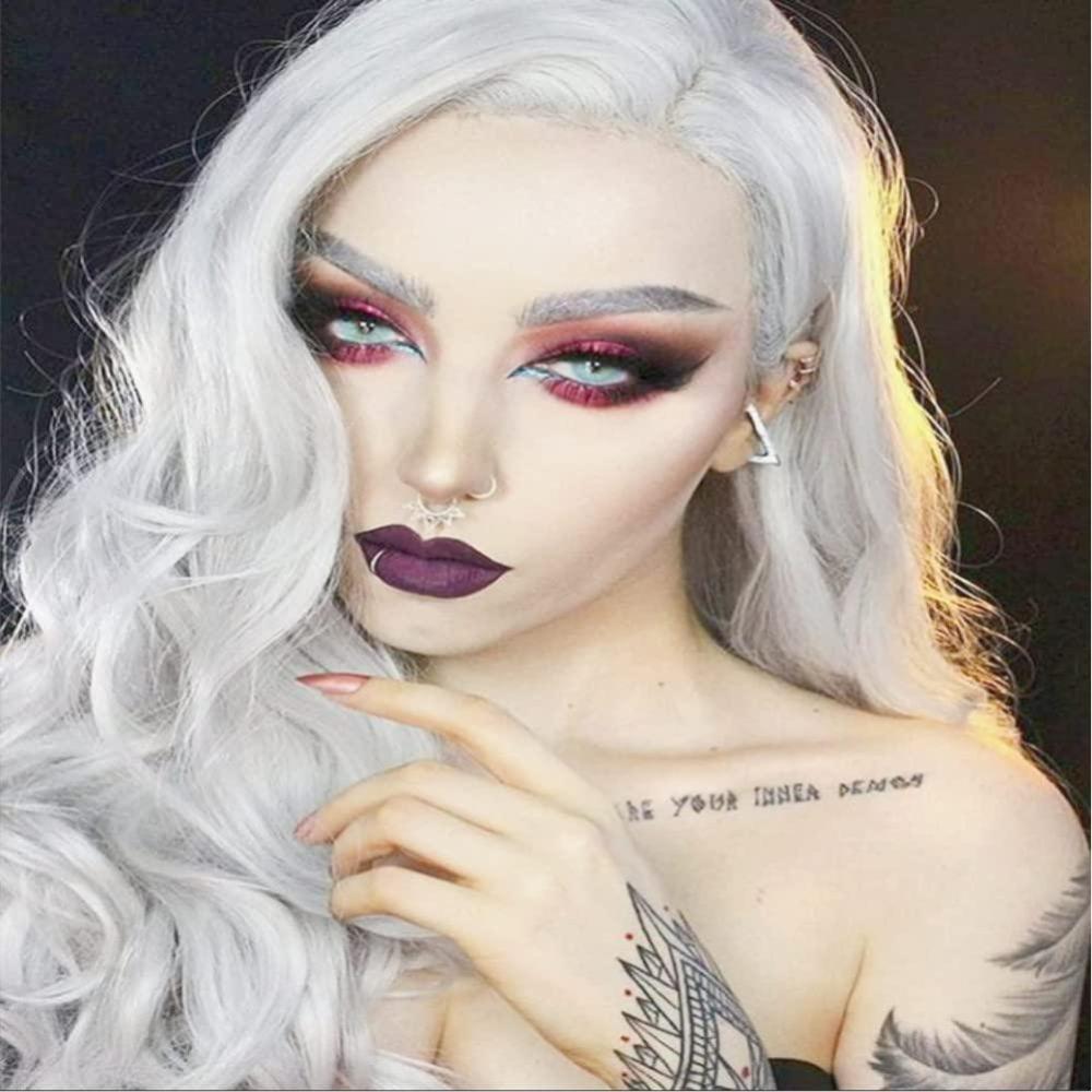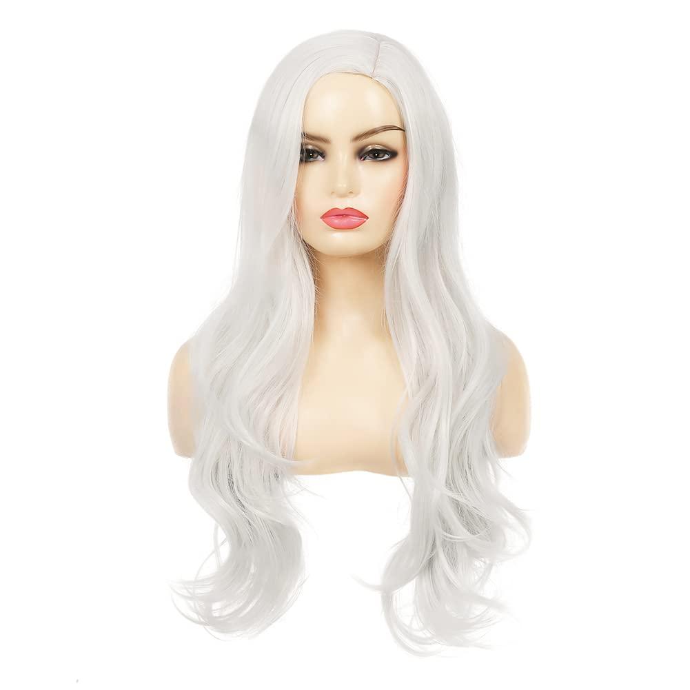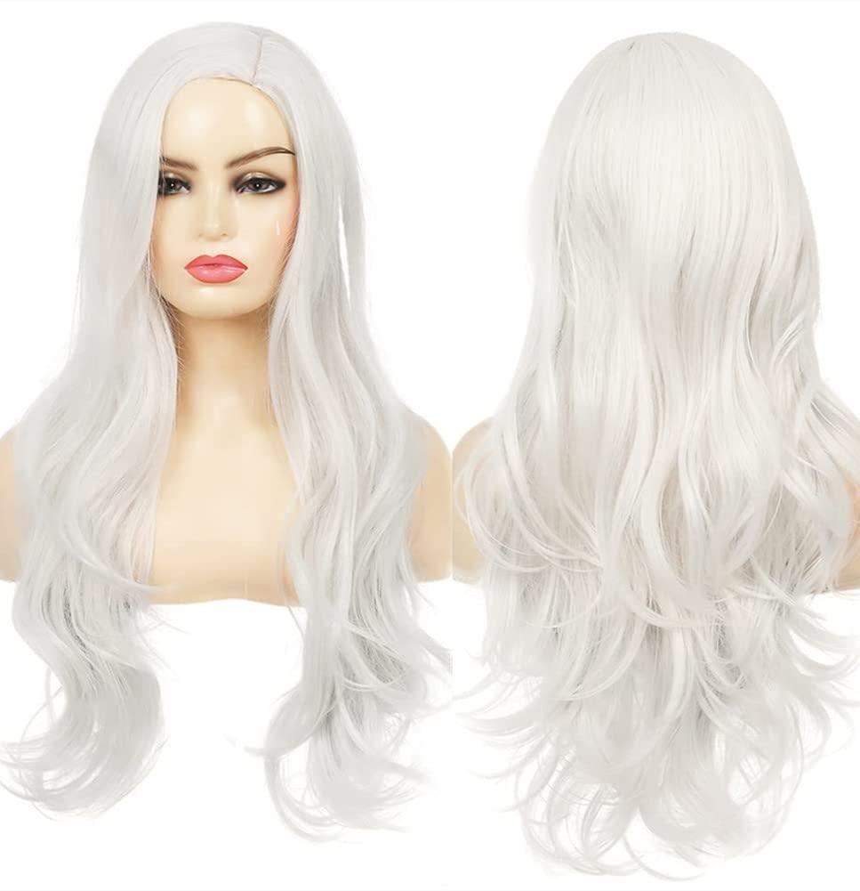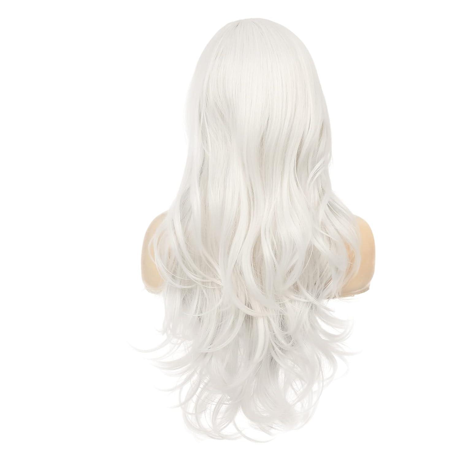 Red Wigs for Women Long Wavy Heat Resistant Side Part Natural Looking Cosplay Wigs Halloween Party (Bright Red)(White)