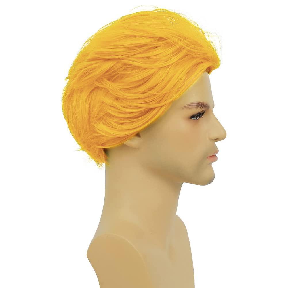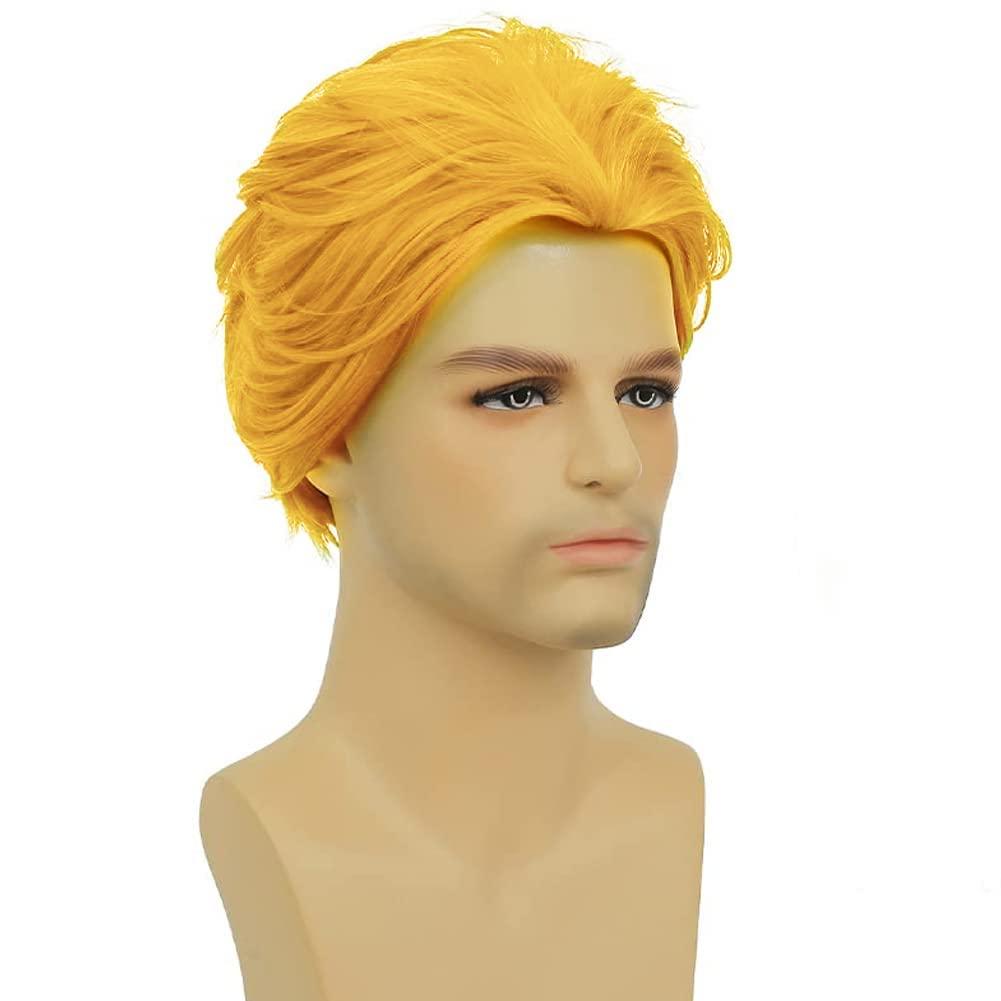 Short Black Curly Wigs for Men Anime Black Hair Wig Layered Fluffy Wave Synthetic Hair Wigs for Cosplay Unisex Wig(Yellow)