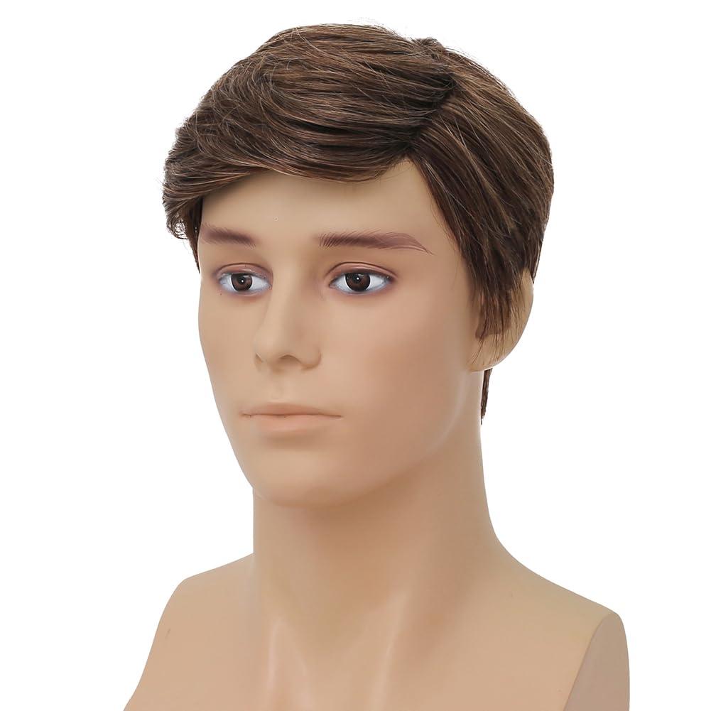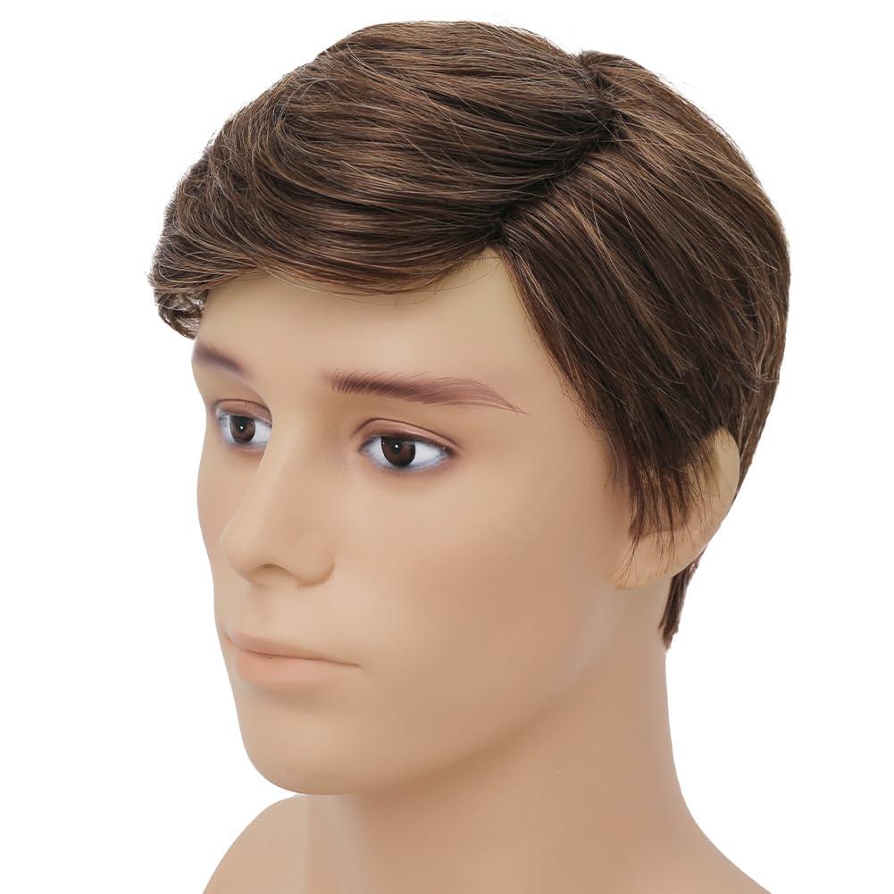 Short Black Wigs for Men Layered Fluffy Natural Synthetic Hair Male Wig Daily and Halloween Wig(Brown#2)