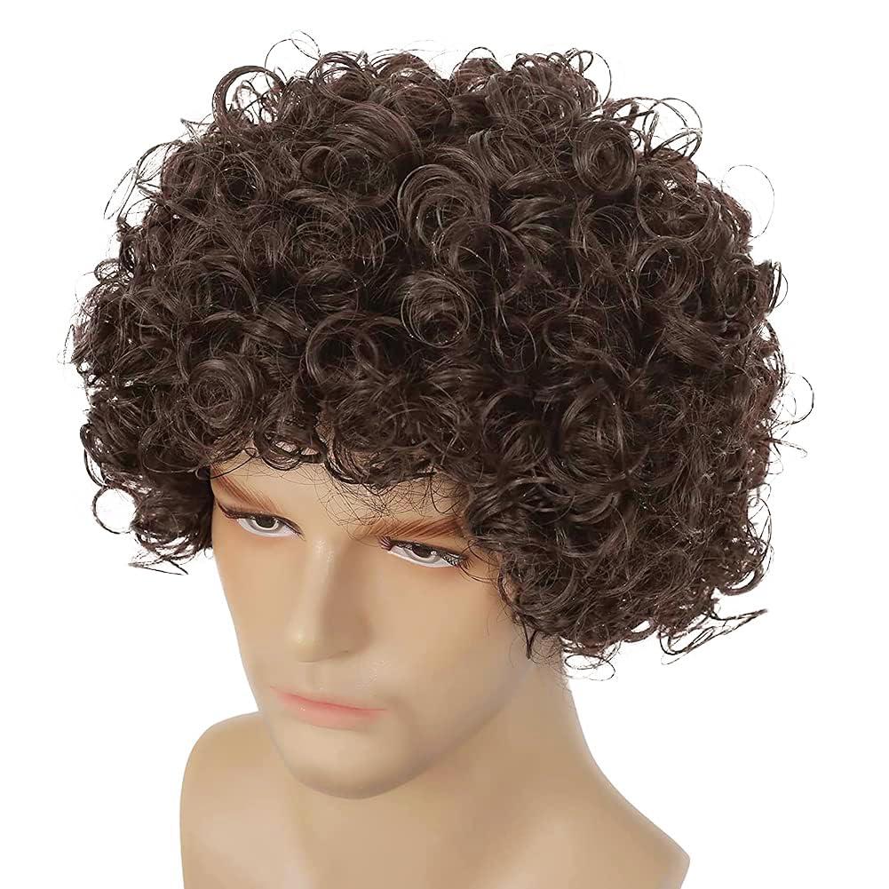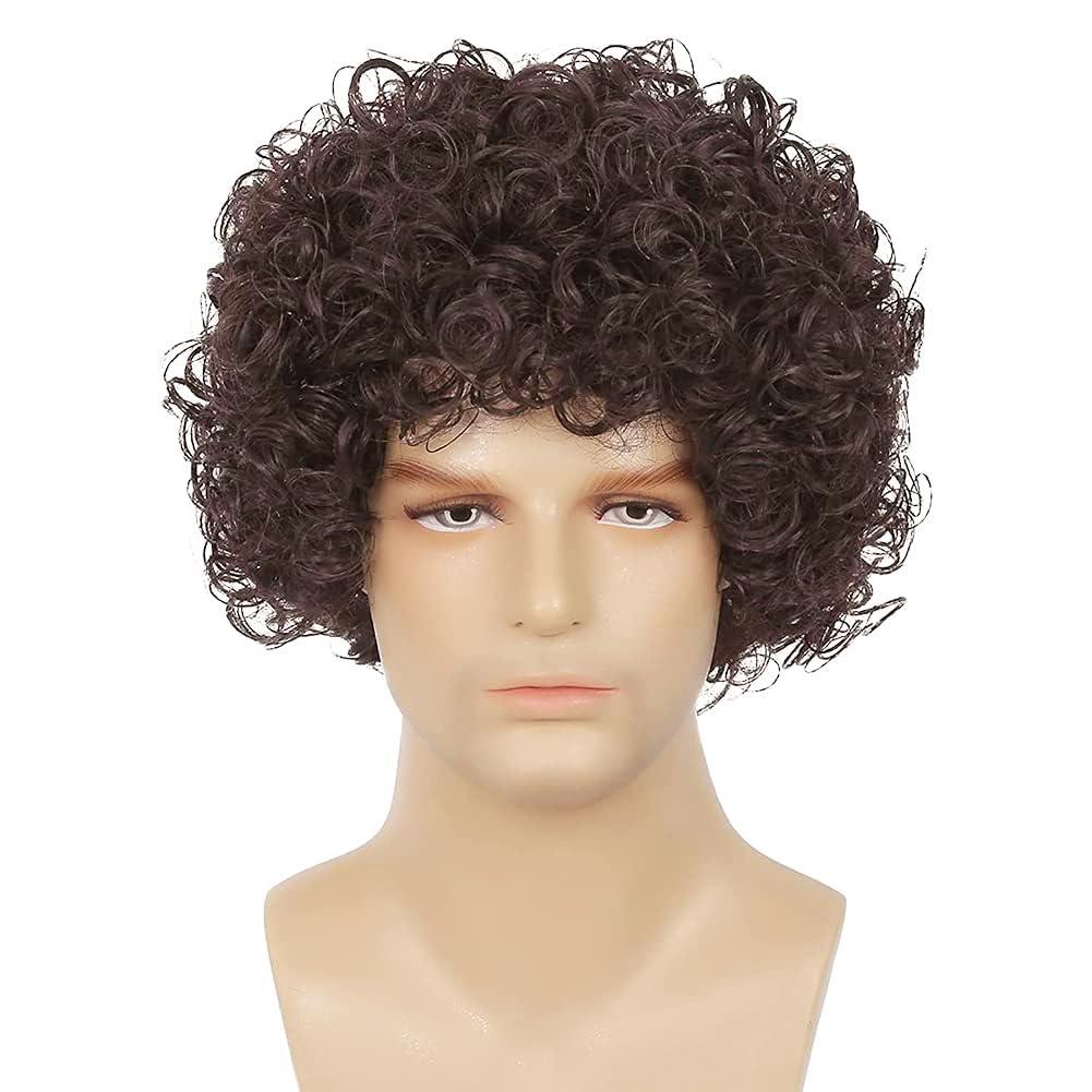 Short Black Wigs for Men Layered Fluffy Natural Synthetic Hair Male Wig Daily and Halloween Wig(Dark Brown)