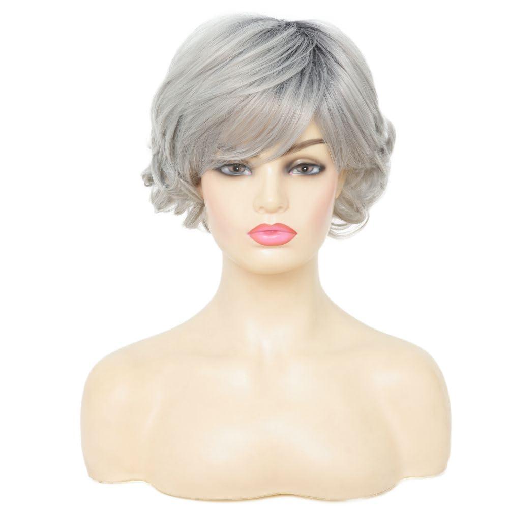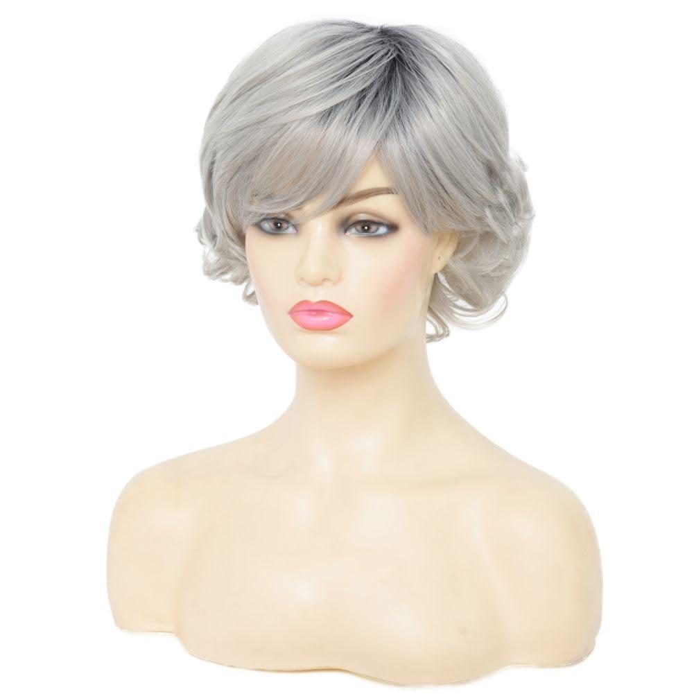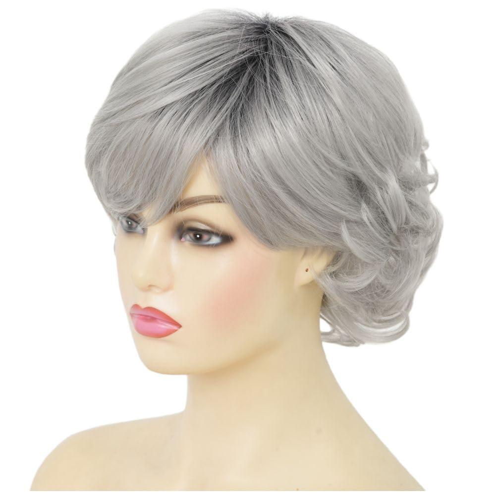 Short Gray Wigs for Women with Bangs Dark Roots Pixie Cut Wig Layered Synthetic Hair Wigs for Daily Use(Short Gray)