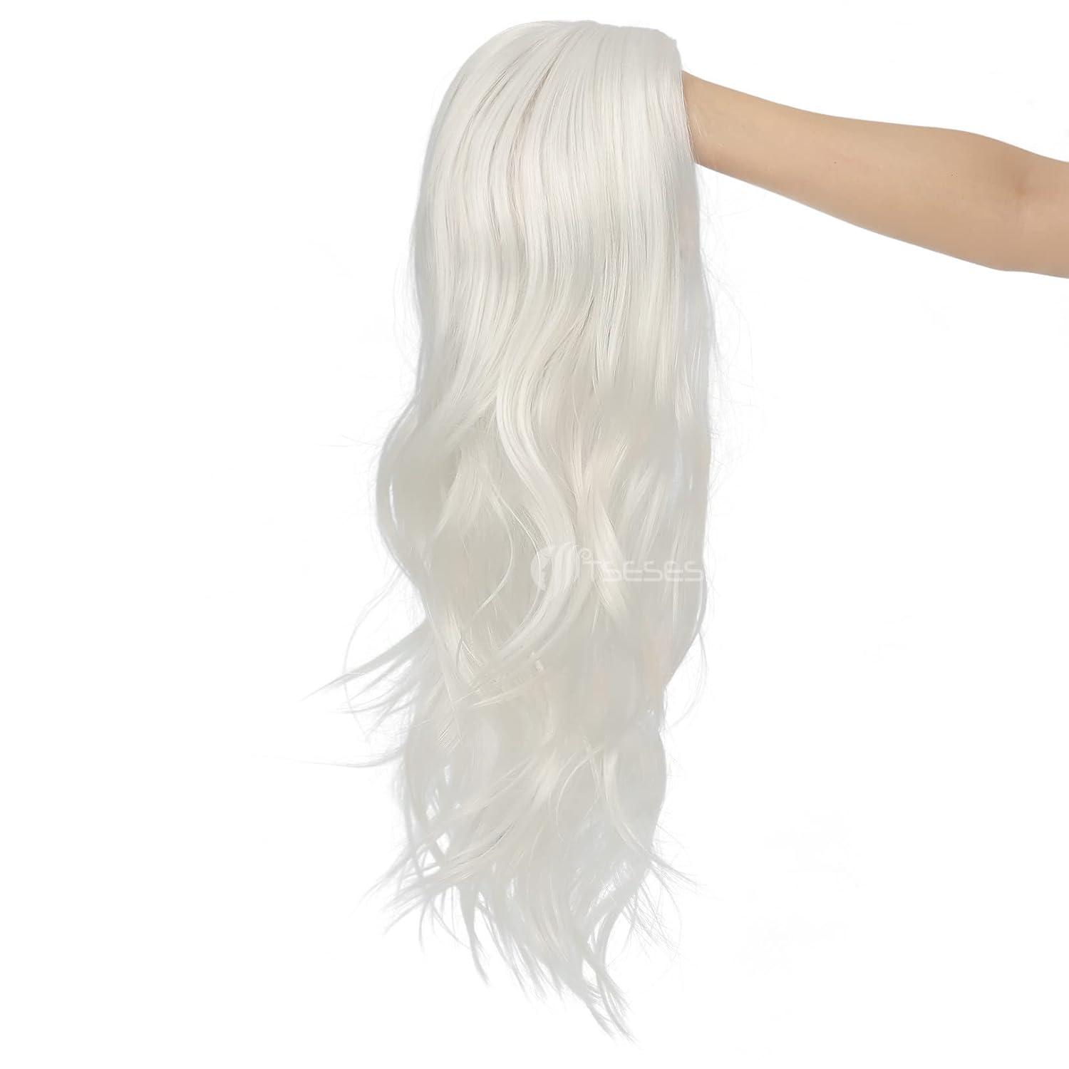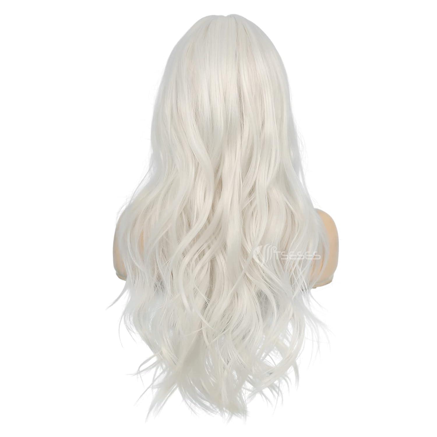 ❤Occasions:This long curly wave white wig perfect for Daily Use, party, weddings, dating, Halloween, gift for friends and certain themed performance, fashion and attractive, adding more charm and fun.